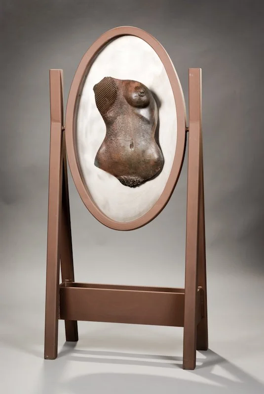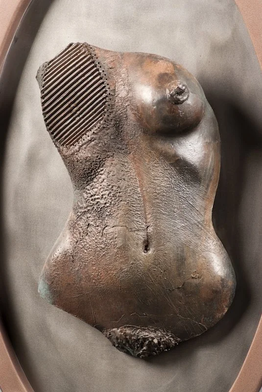 A reassembled torso supported by exposed steel armature, this work speaks to repair that remains visible—healing as a new configuration rather than a return to “before.”