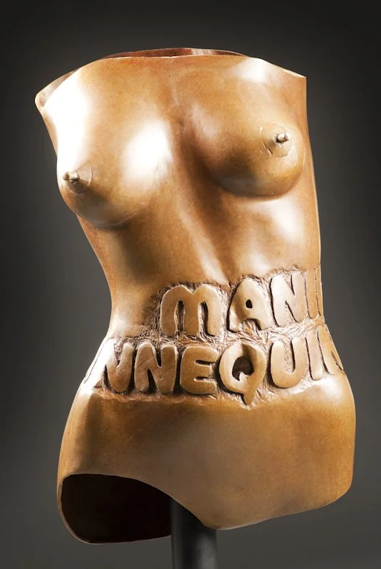 Gallery Vogue (1998)Bronze 50 × 31 × 28 cm. (20 × 12 × 11 in.)Total height with mount: 132 cm (53 in.)A stylized, fashion-inflected figure that exposes the performance demanded by ideals of beauty, even as the body beneath strains against them..